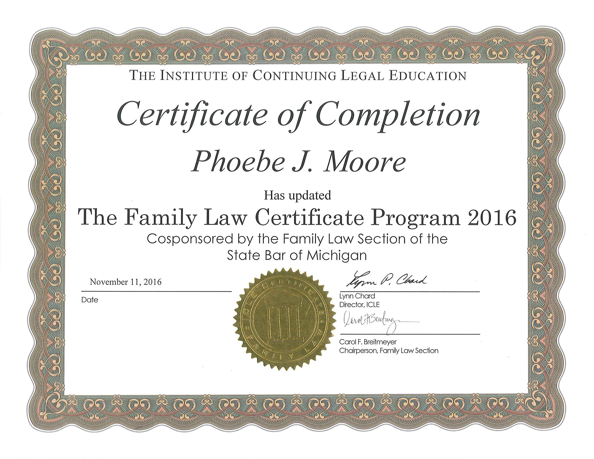 • Certificate of Complete - The Family Law Certificate Program 2016
